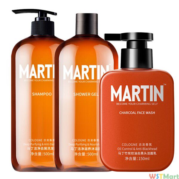 马丁 男士沐浴露古龙香氛洗发水洁面乳套装(身体护理三件套)
